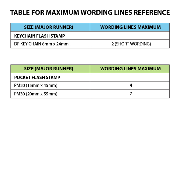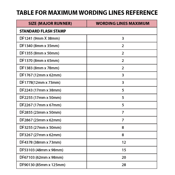 Please refer to the table for maximum wording line before order.
